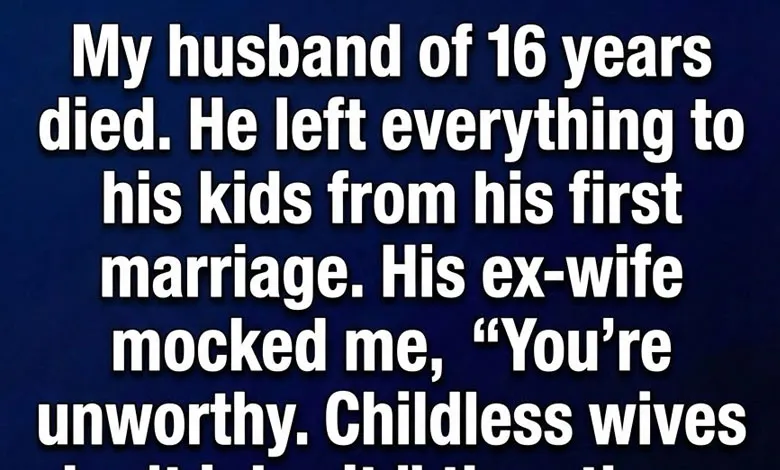 Marina had been married to Elias for sixteen years, years filled with quiet routines and shared dreams. When he passed away unexpectedly, grief hit her like a wave she could barely stand against. At the reading of the will, she sat still, hands folded tightly, expecting at least the home they had built together to remain hers. But the lawyer’s words were clear: everything had been left to Elias’s children from his first marriage. The room felt colder with each sentence. When she stepped outside afterward, his ex-wife, Nadine, stood waiting, her expression sharp as glass. “You were never meant to have anything,” Nadine said. “Childless wives don’t inherit.” Then, without hesitation, she told Marina to leave the flat immediately. In shock and exhaustion, Marina left with only a small suitcase and a heart too heavy to protest.