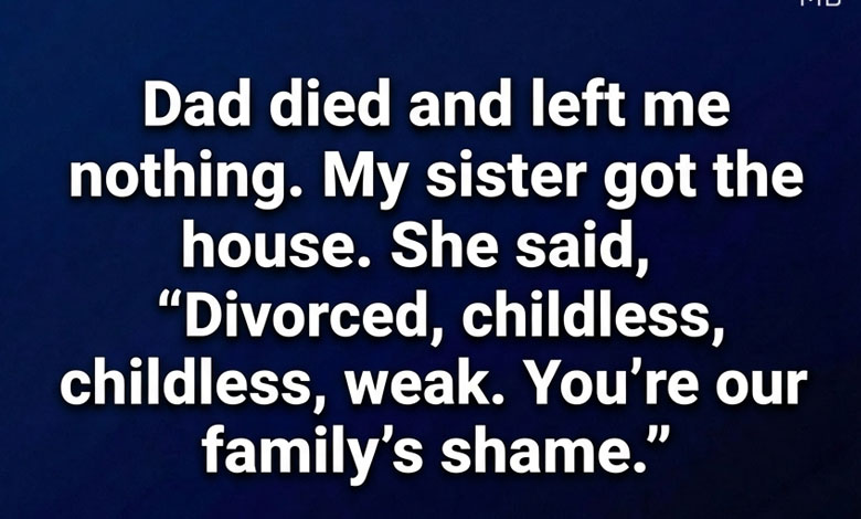 Dad died and left me nothing. My sister got the house. She said, “Divorced, childless, weak. You’re our family’s shame.” That night, I was sent Dad’s broken couch. I sent it for repair. The guy called, in panic: “Come NOW!” My blood went cold when I found hidden.At the workshop, the repairman lifted a torn cushion and revealed a narrow wooden panel built into the frame. Inside lay a stack of envelopes, a worn notebook, and a small tin box wrapped carefully in cloth.