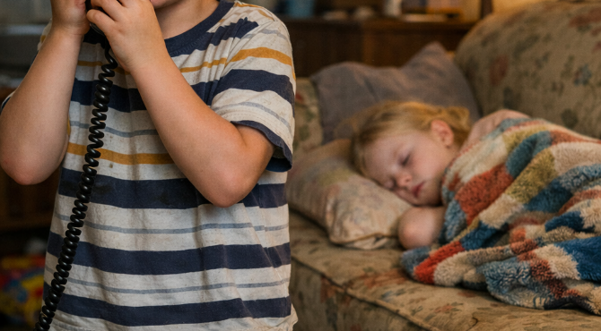 “Dad… Elsie won’t wake up,” he whispered. “She’s been sleeping all day and she’s really hot. Mom isn’t here. And… there’s no food left in the house.”