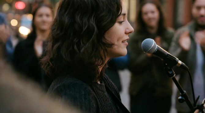 She finished the song, opened her eyes, and smiled at the small crowd as they applauded.
