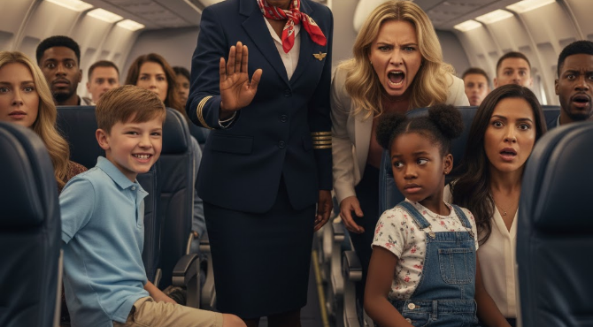 Moments later, Captain Laura Jennings entered the cabin. Her calm presence immediately quieted the murmurs. “Ma’am,” she said firmly, “you have been reported for using racial slurs toward another passenger. That behavior will not be tolerated.”