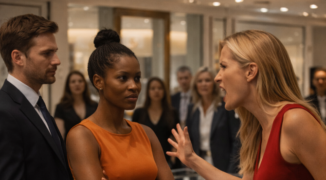The manager, still poised in heels and satin, looked around at the phones aimed at her, at the whispers curling through the boutique like smoke.