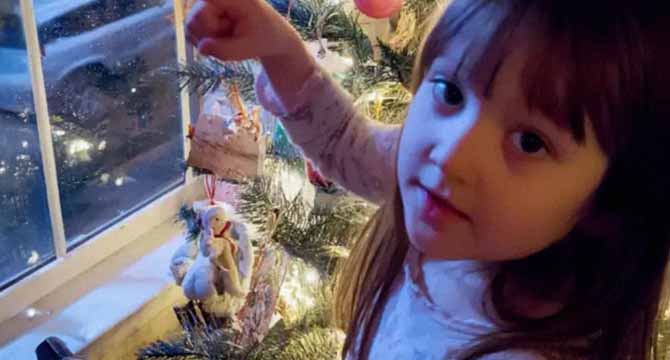 She stared at it for a long moment, then tiptoed over to the tree and nestled it near the top.