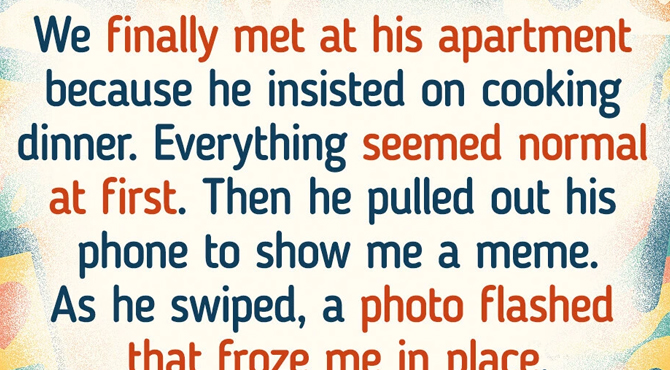 We finally met at his apartment because he insisted on cooking dinner. Everything seemed normal at first — good conversation, good food. Then he pulled out his phone to show me a meme. As he swiped, a photo flashed that froze me in place. It was a picture of me crying in my car from months ago — something I thought I’d experienced alone. I asked him where he got it. He didn’t even flinch. “Oh, I’ve been following you longer than you’ve known me.”